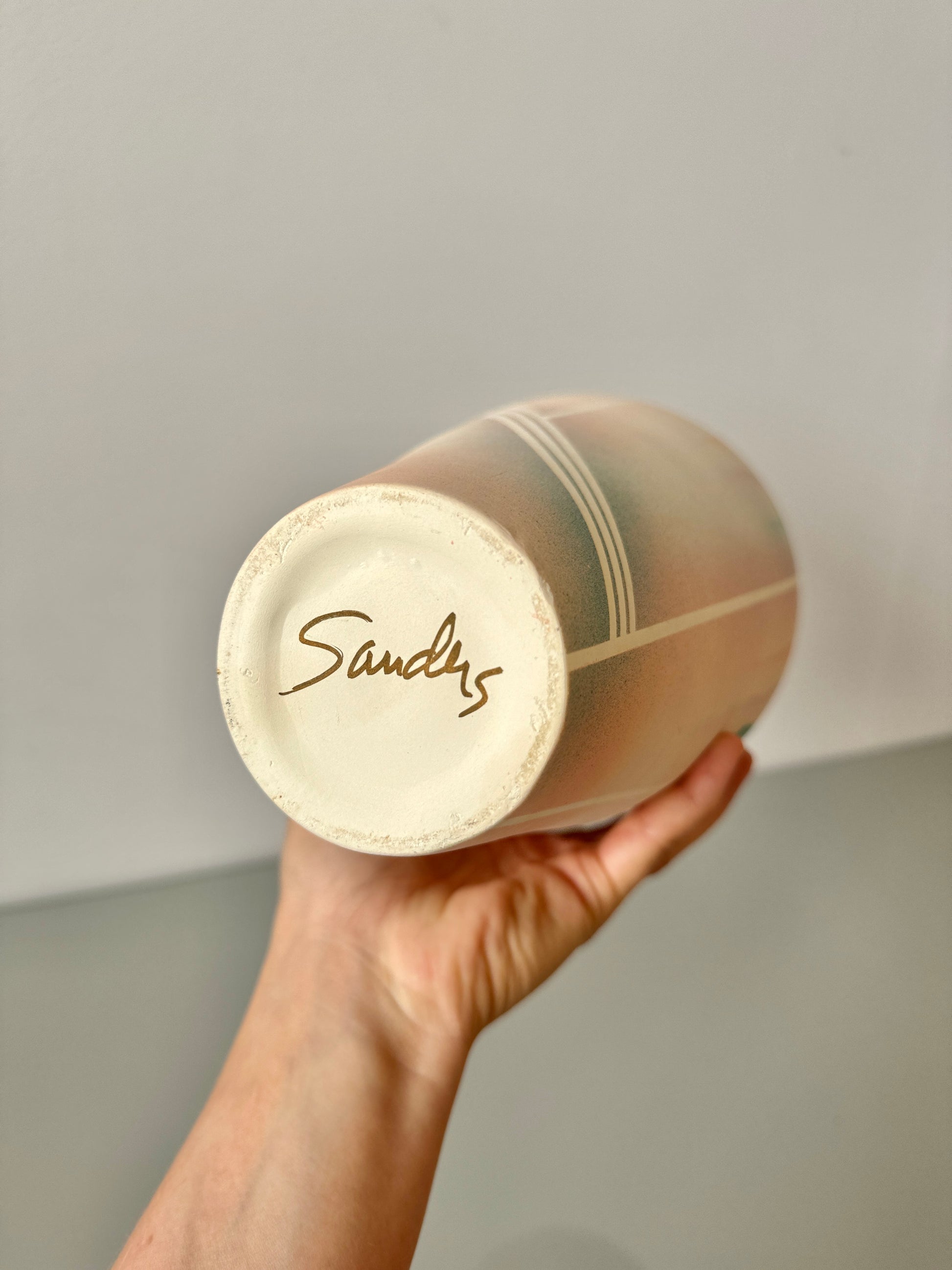 Vintage abstract postmodern ceramic vase in matte pastel. Lovely shape. Signed on bottom.