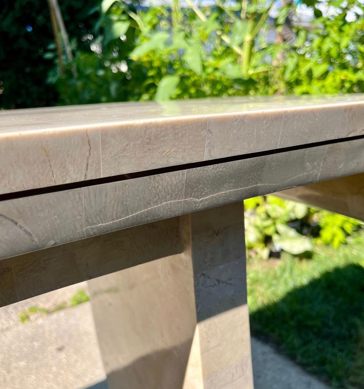 Maitland Smith Tessellated Stone & Brass Inlay Console Table
