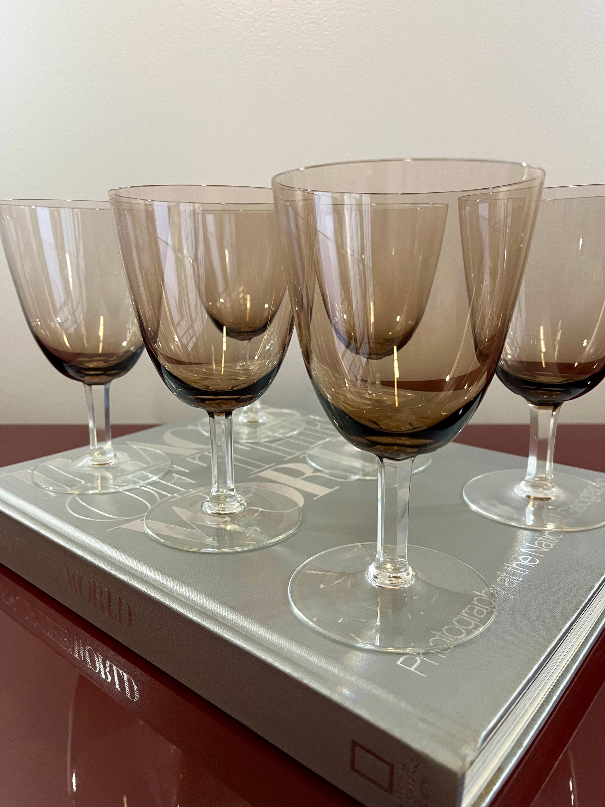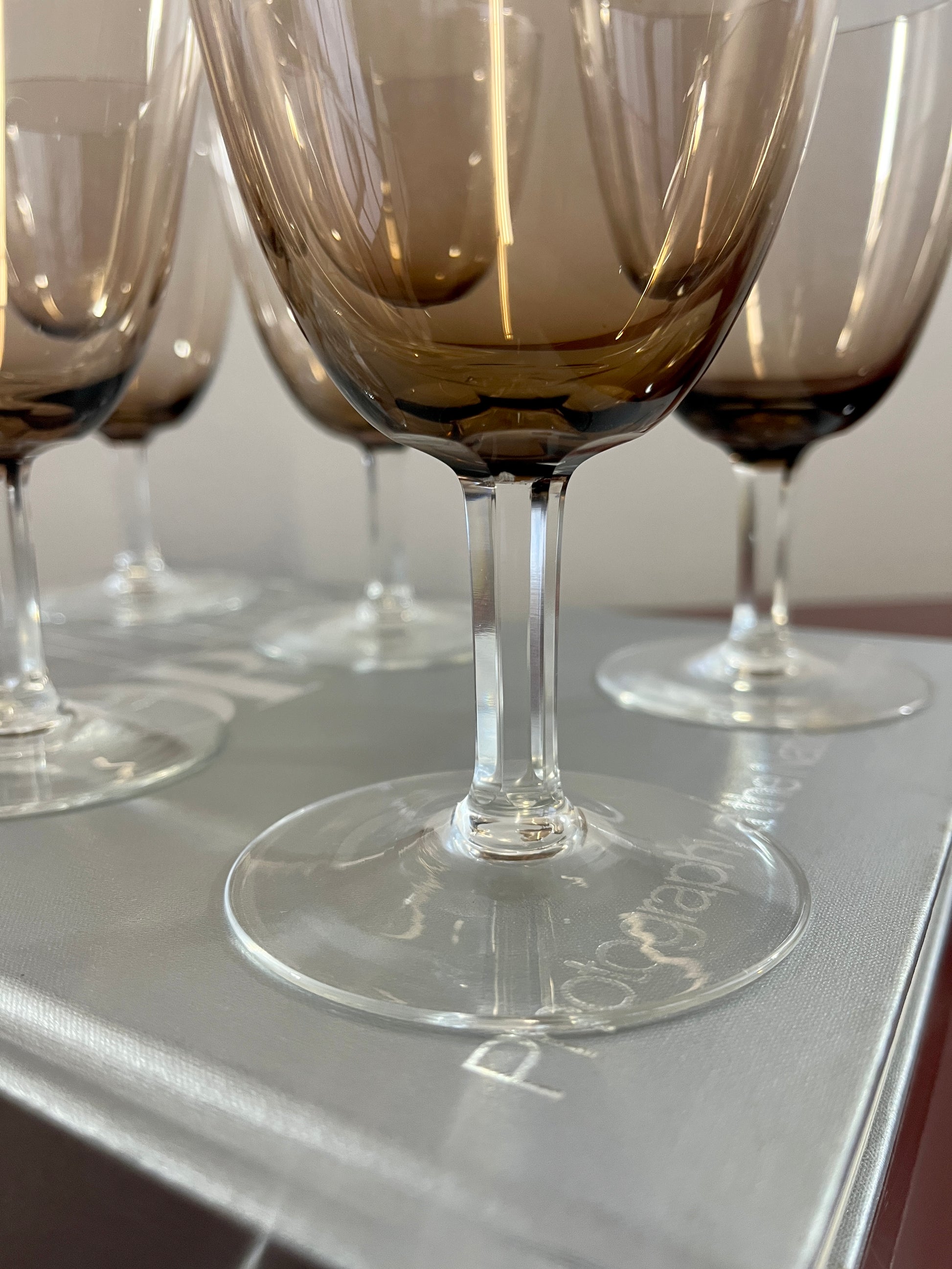 MCM Smokey Taupe Crystal Wine Glasses