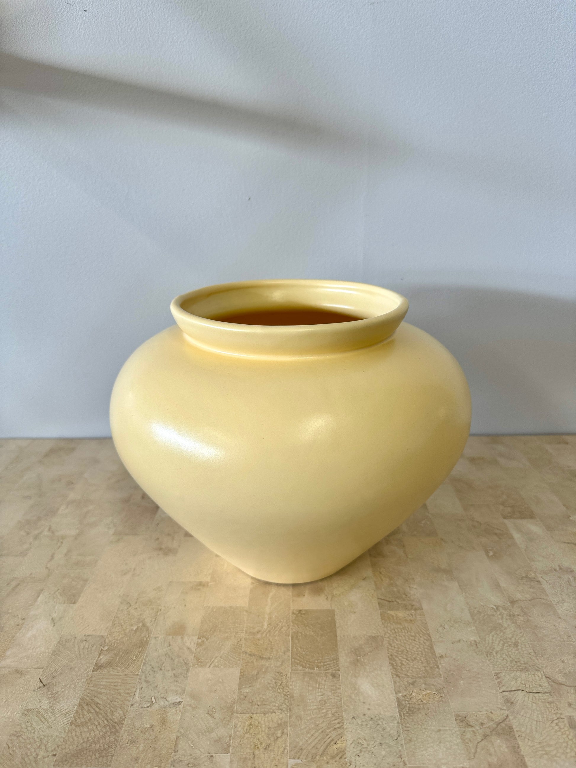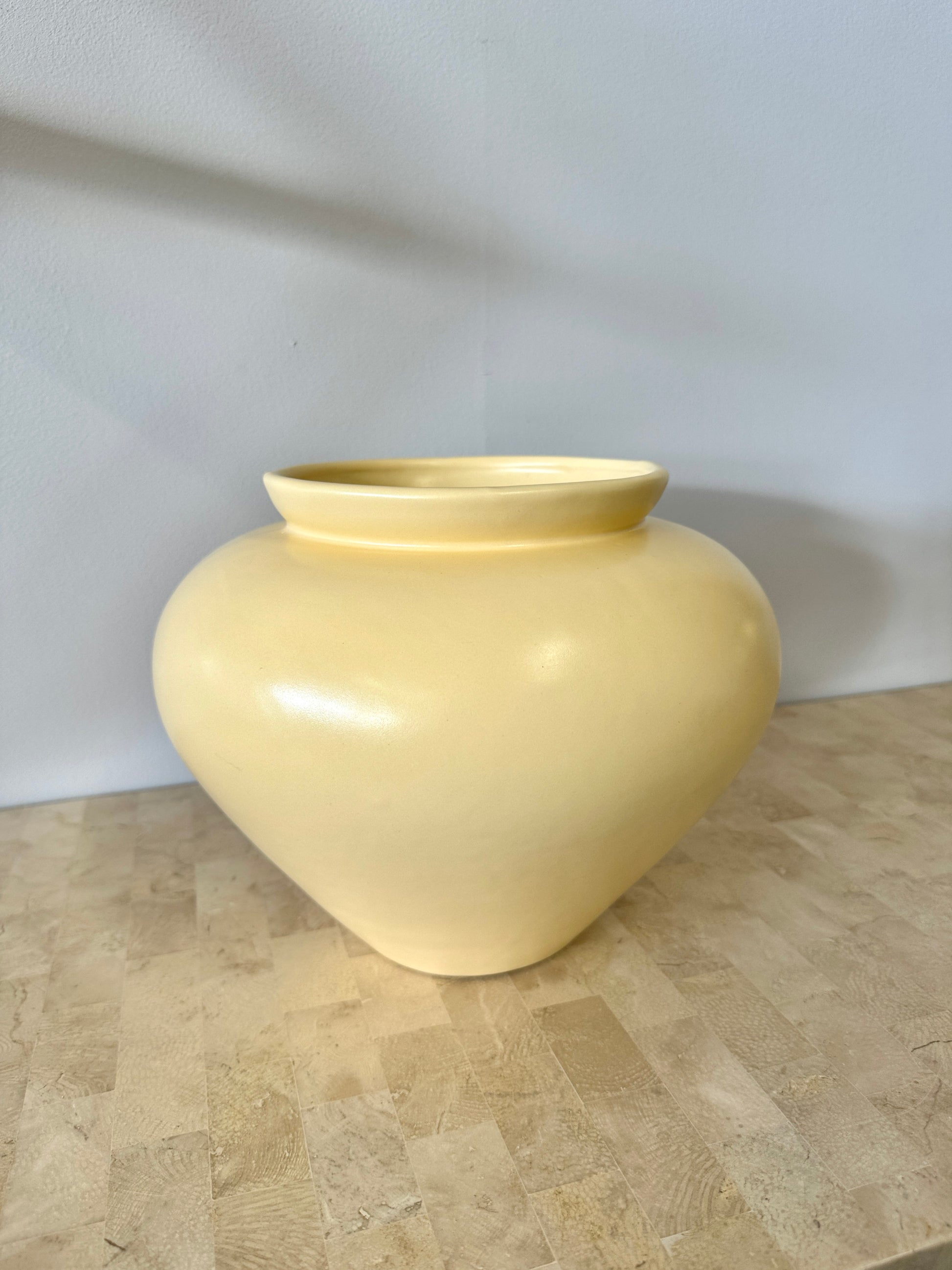 Wonderful vintage 1990s Haeger vase. Lovely bold curves and smooth butter yellow satin glaze.