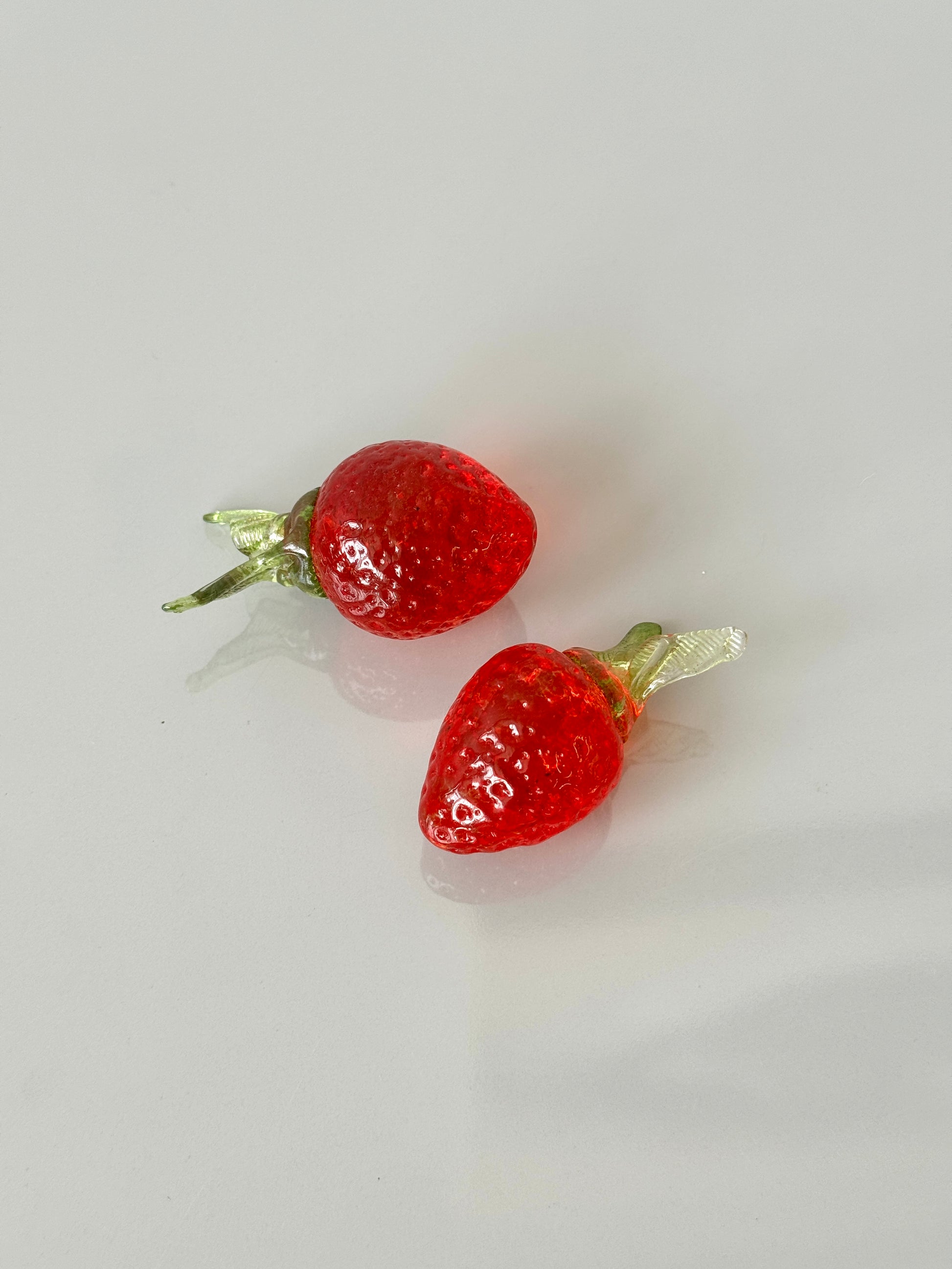 Beautiful vintage handblown glass strawberries. Two available. Sold individually.