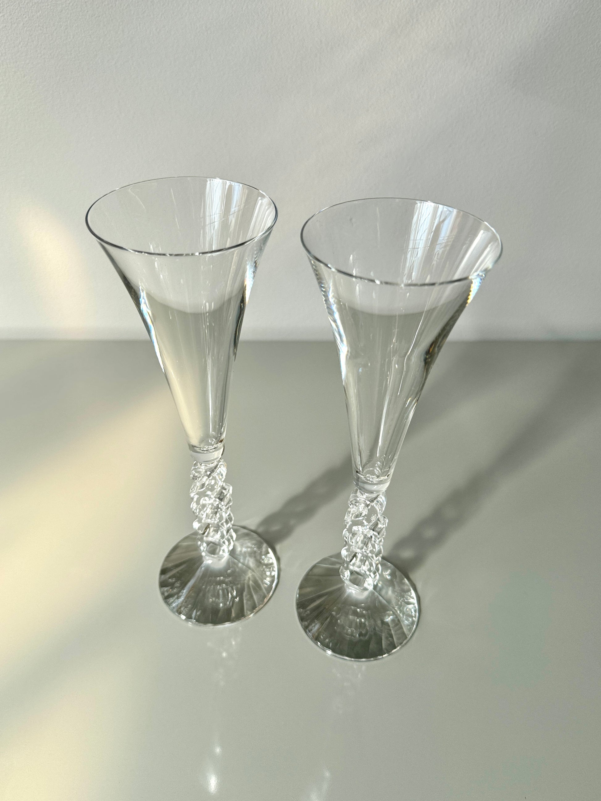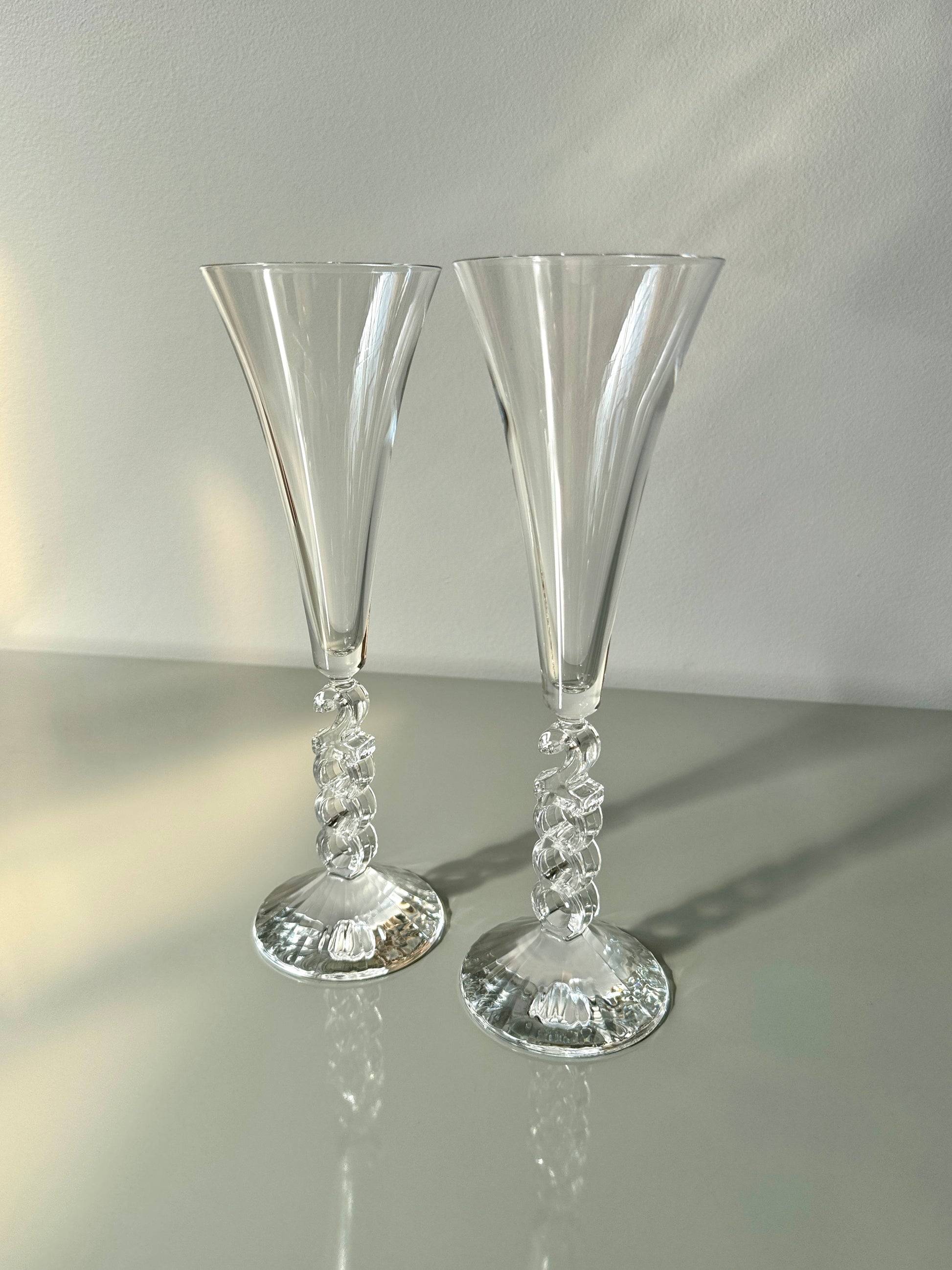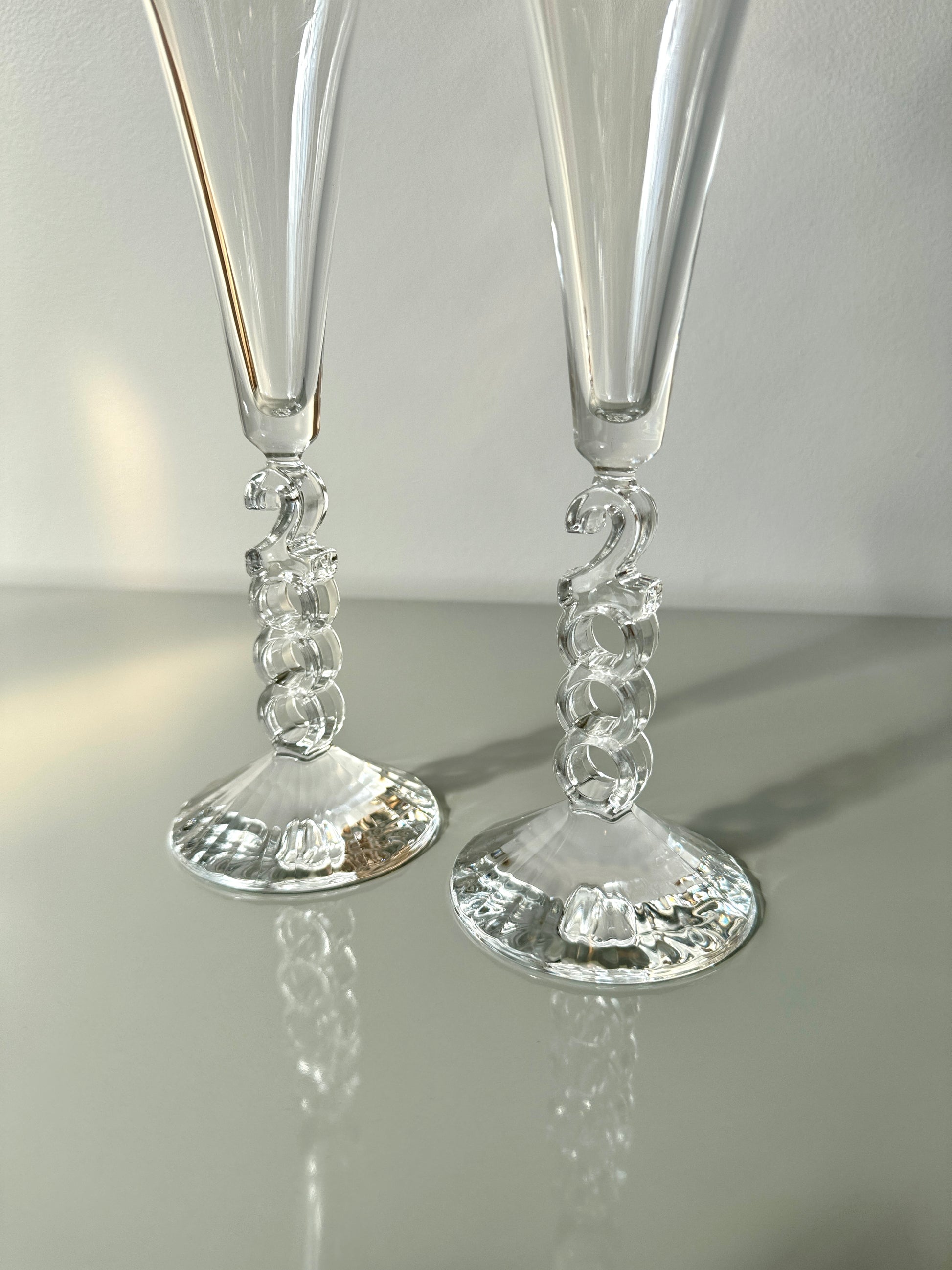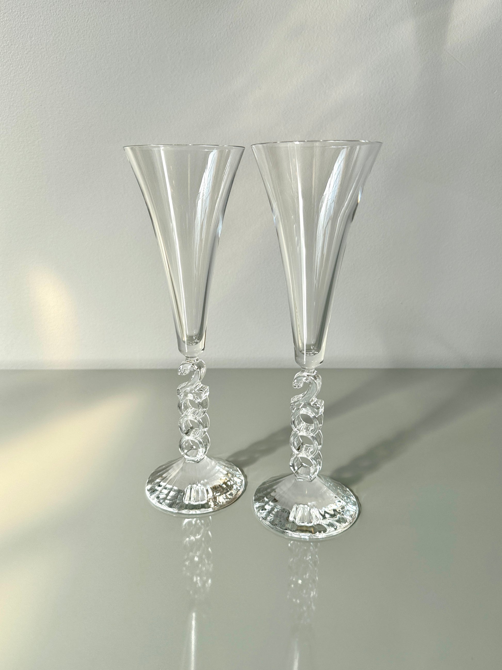 Vintage Pair Cristal D'arques-Durand Crystal Fluted Millennium Champagne Glasses