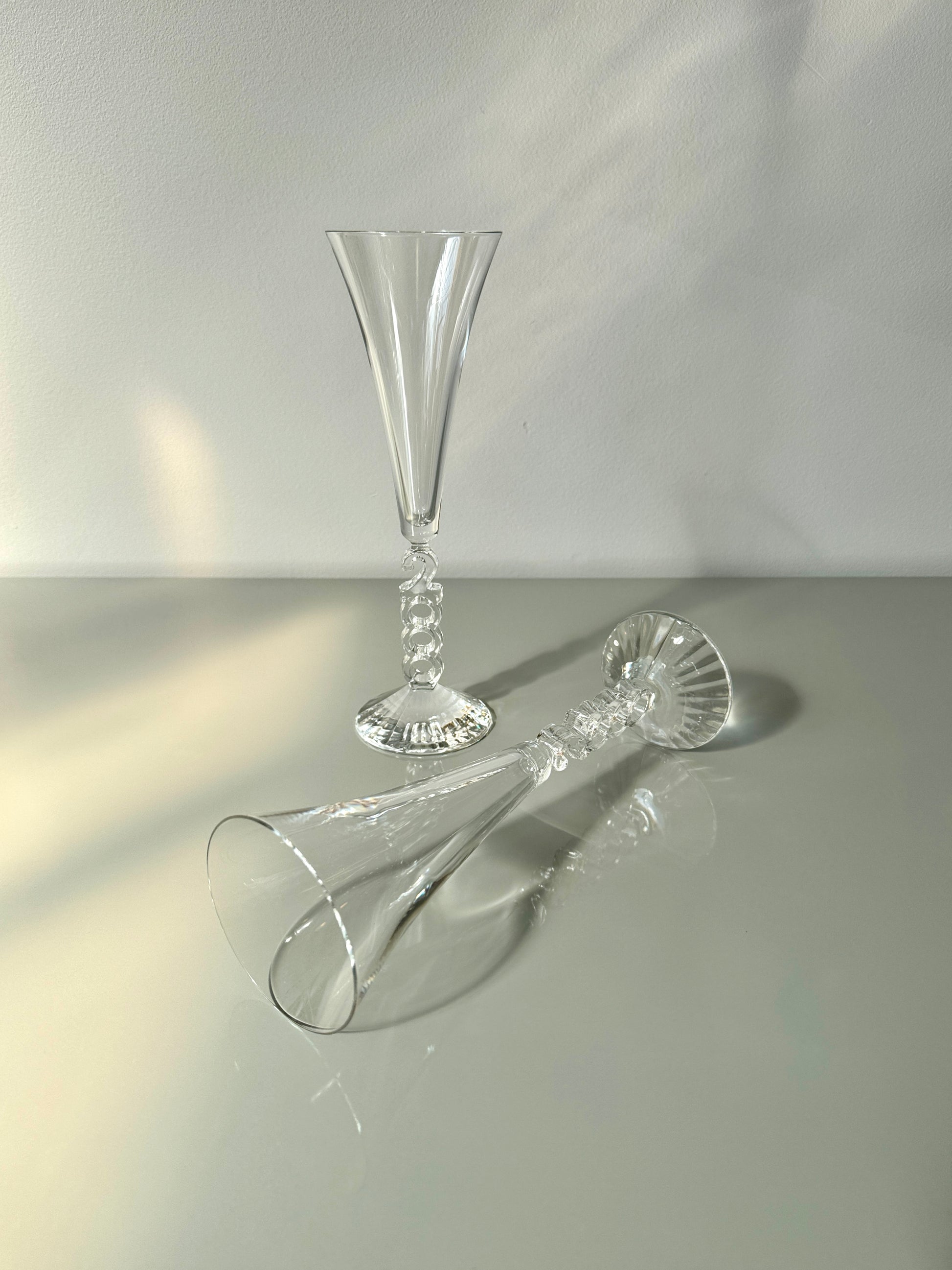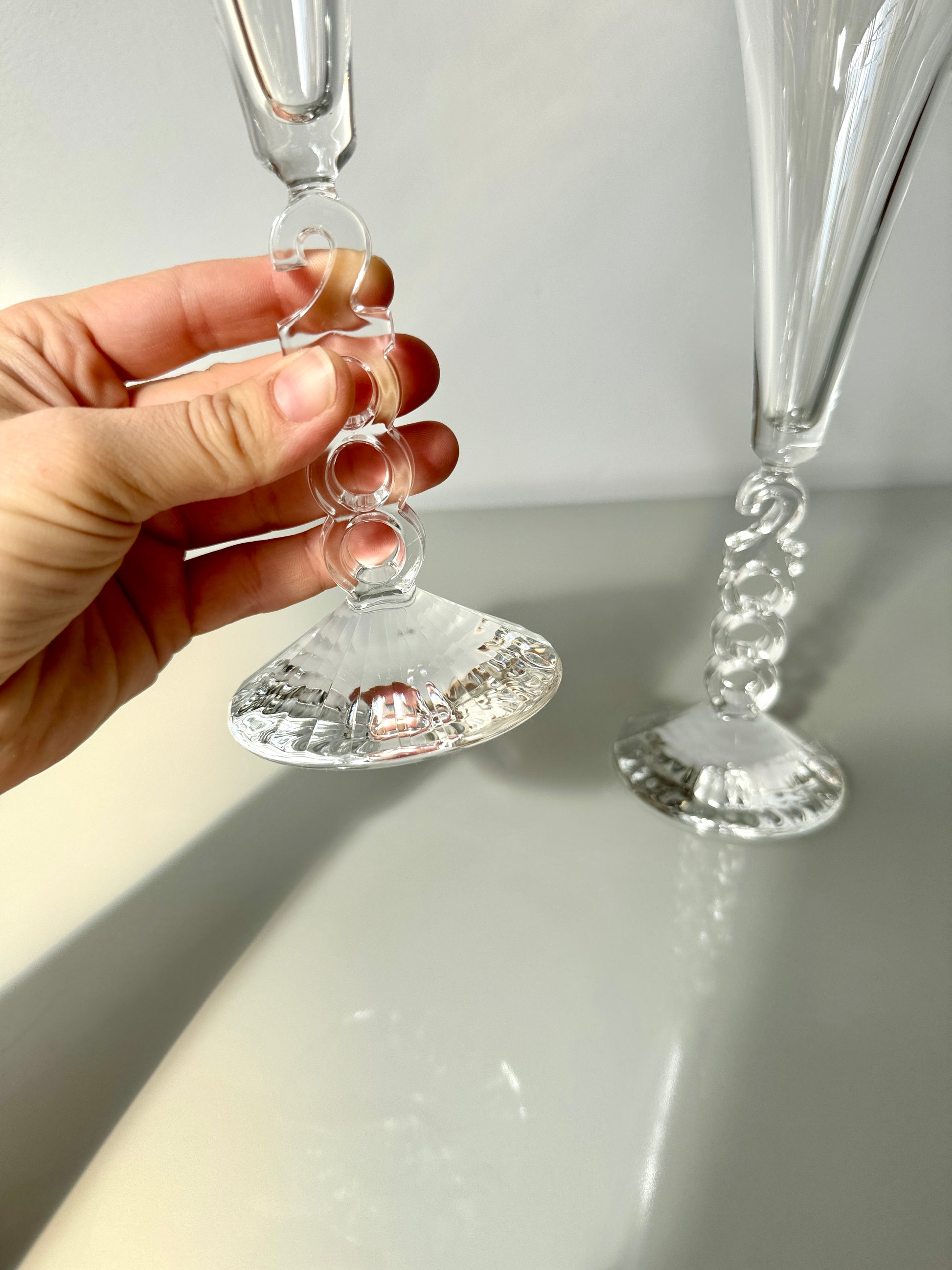 The quintessential Y2K Vintage glassware. Pair Cristal D’Arques Millennium Champagne Flutes. Heavy faceted crystal base and “2000” stem.