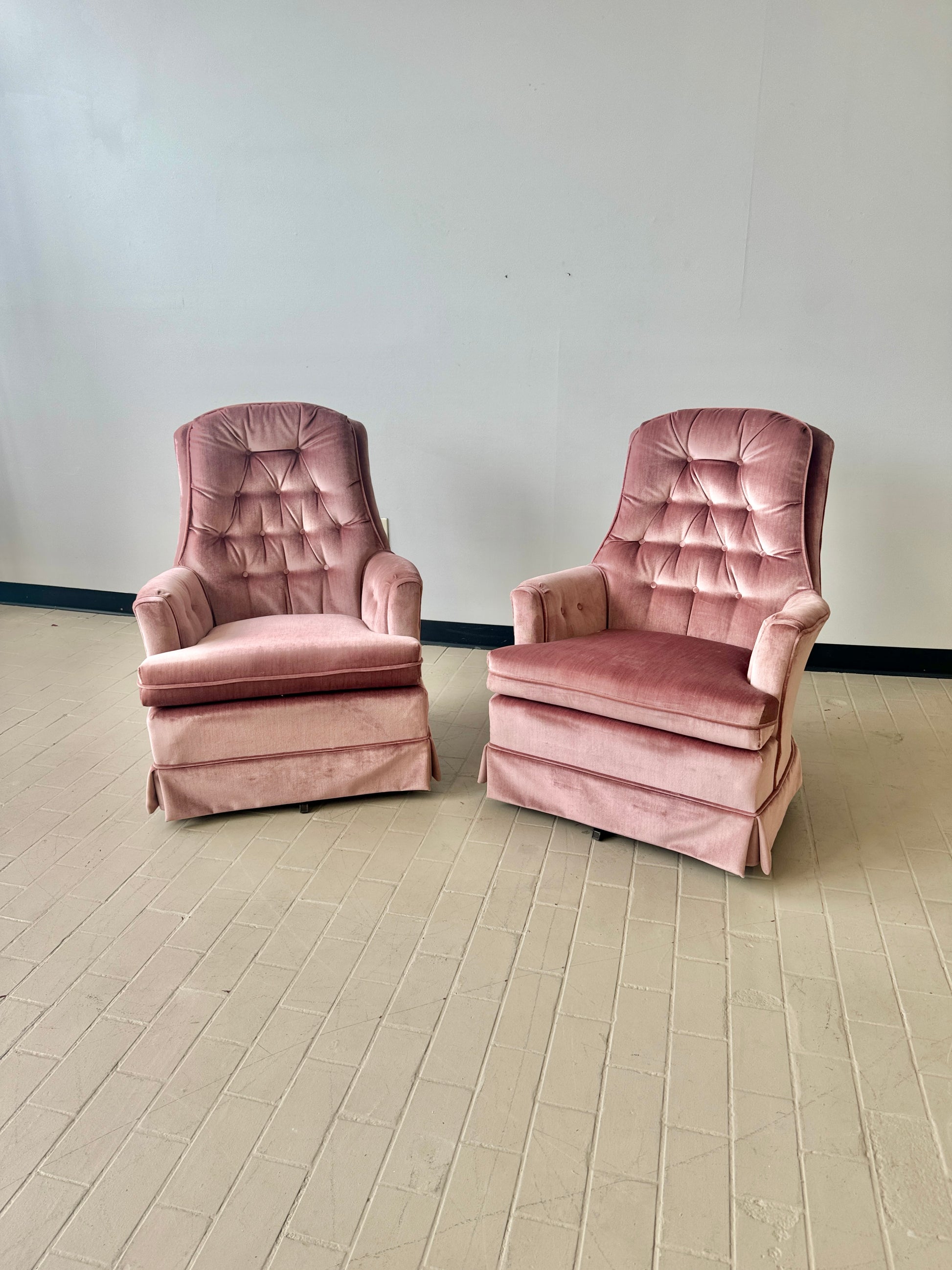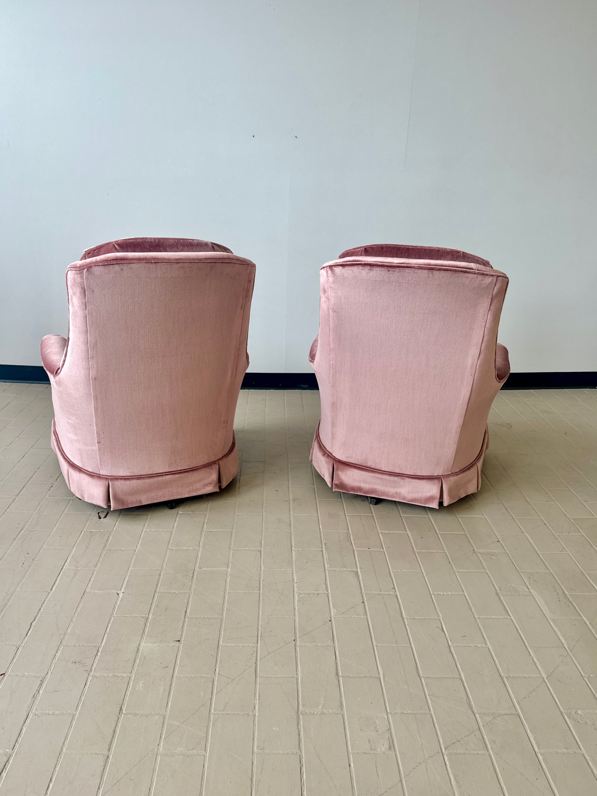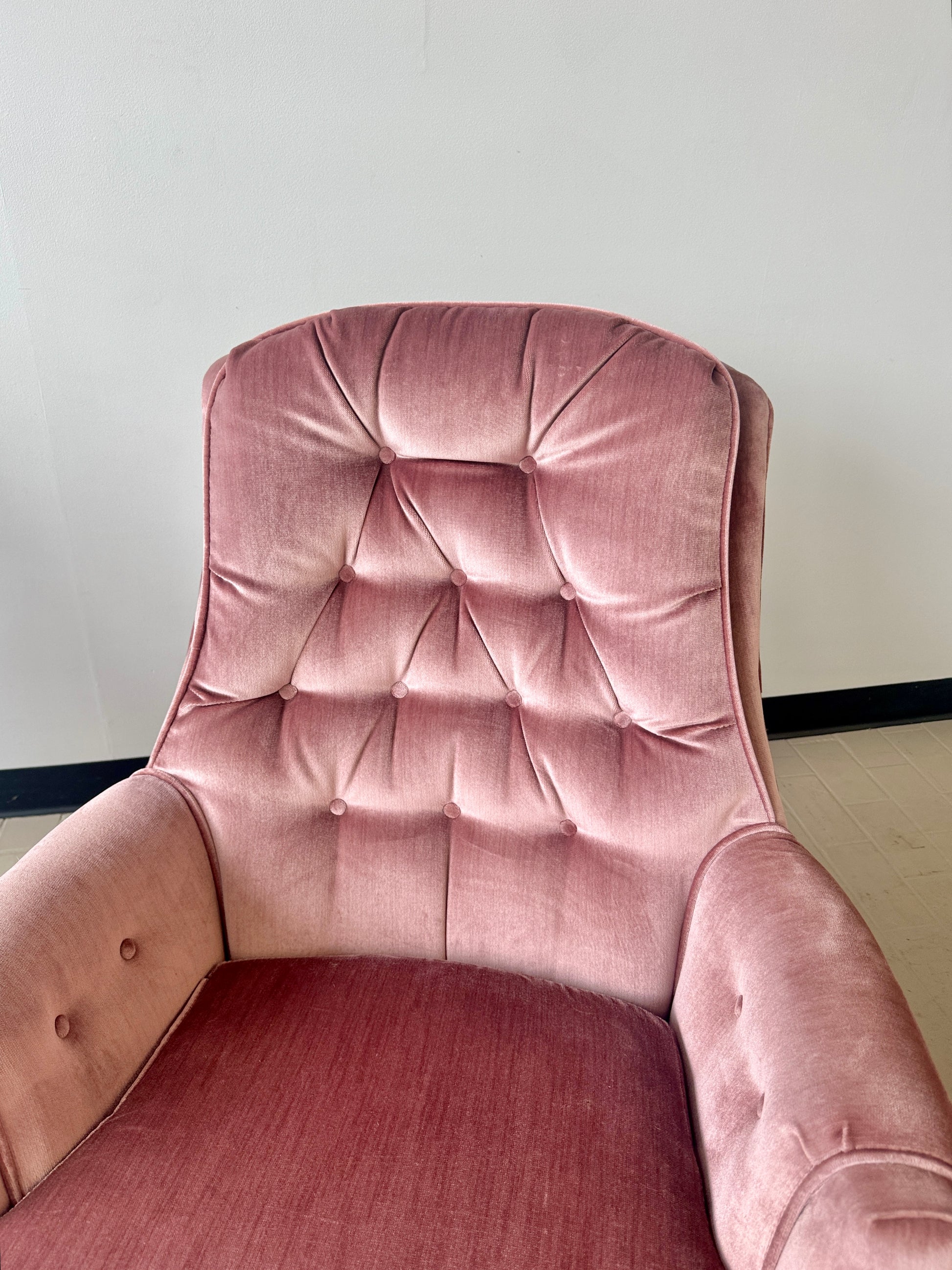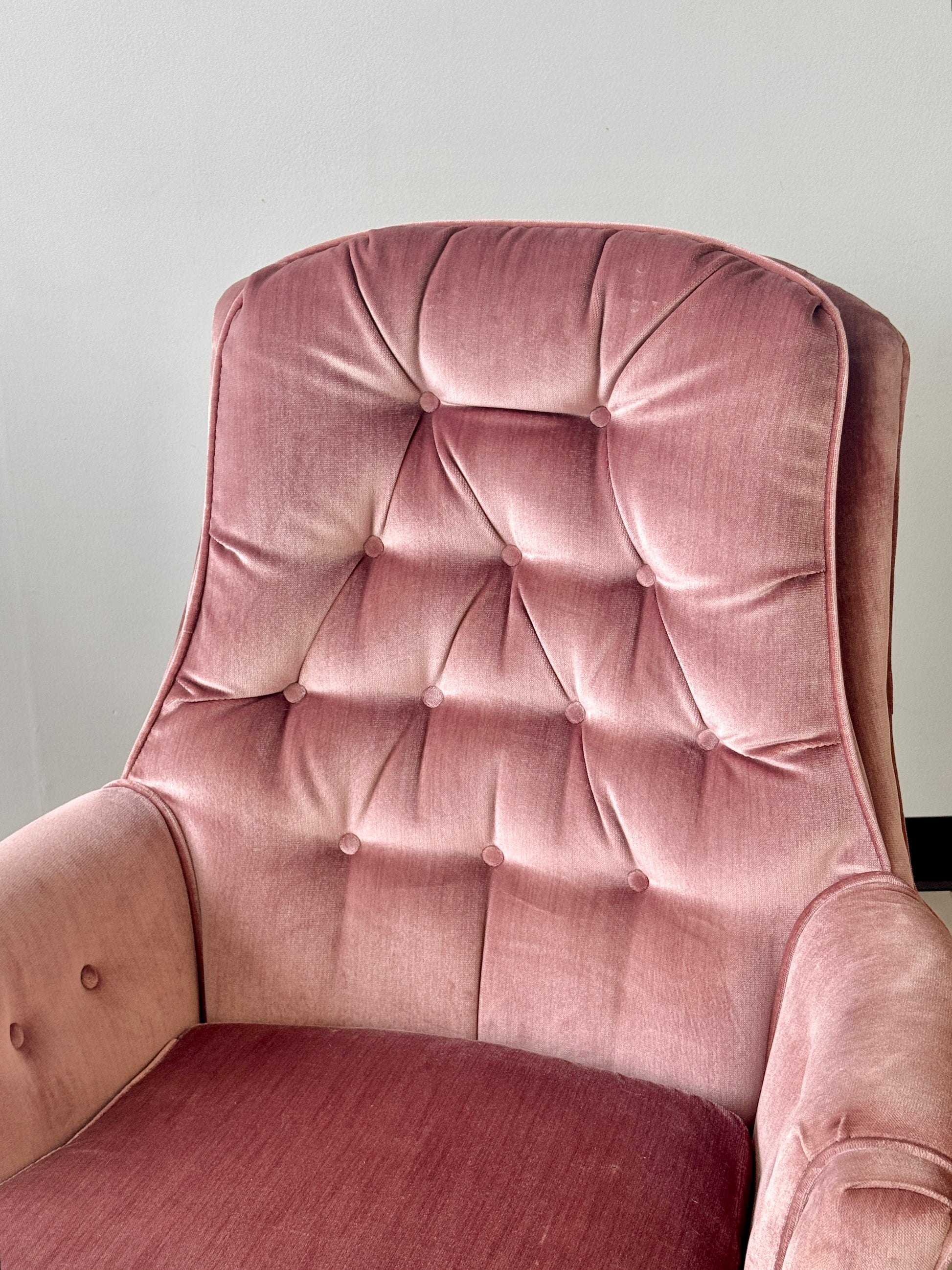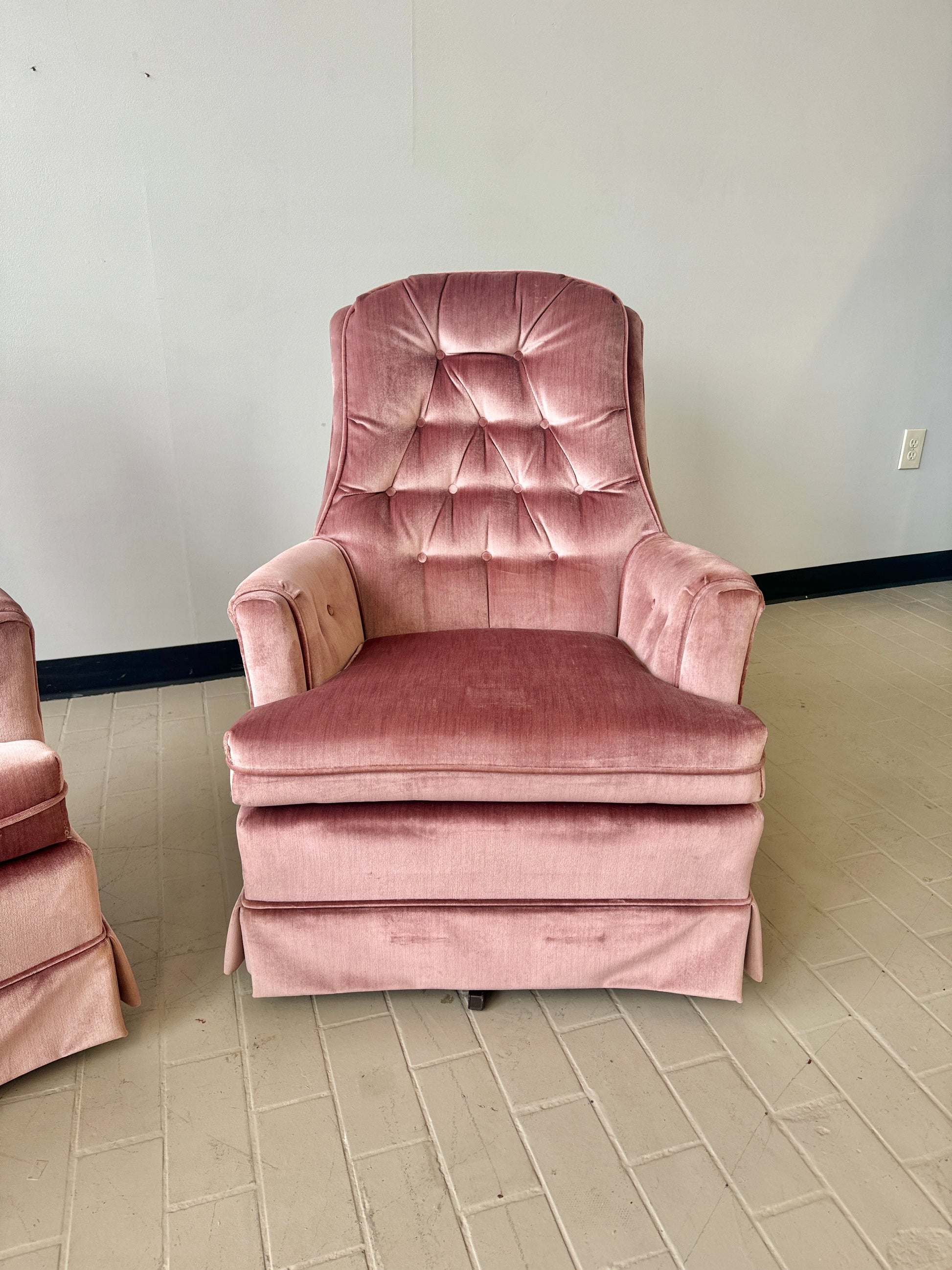 Vintage Pink Tufted Velvet Swivel Lounge Chairs (2 available)