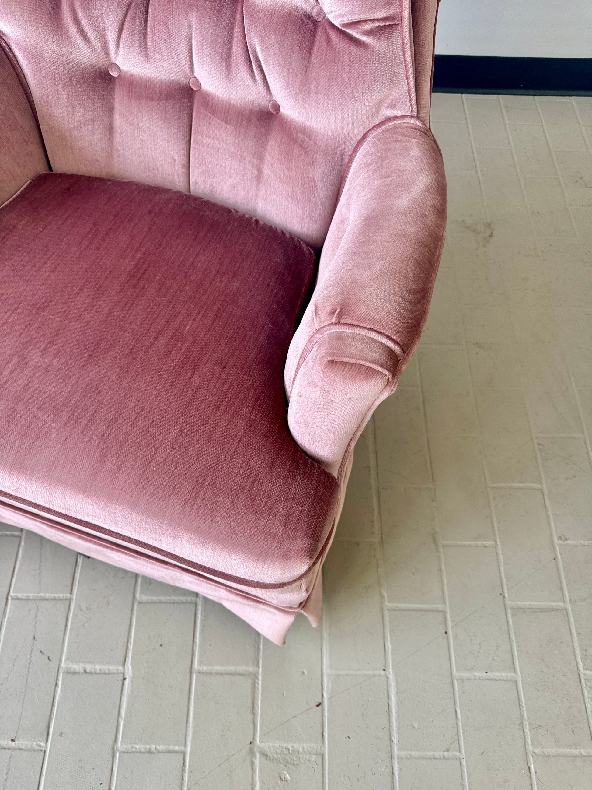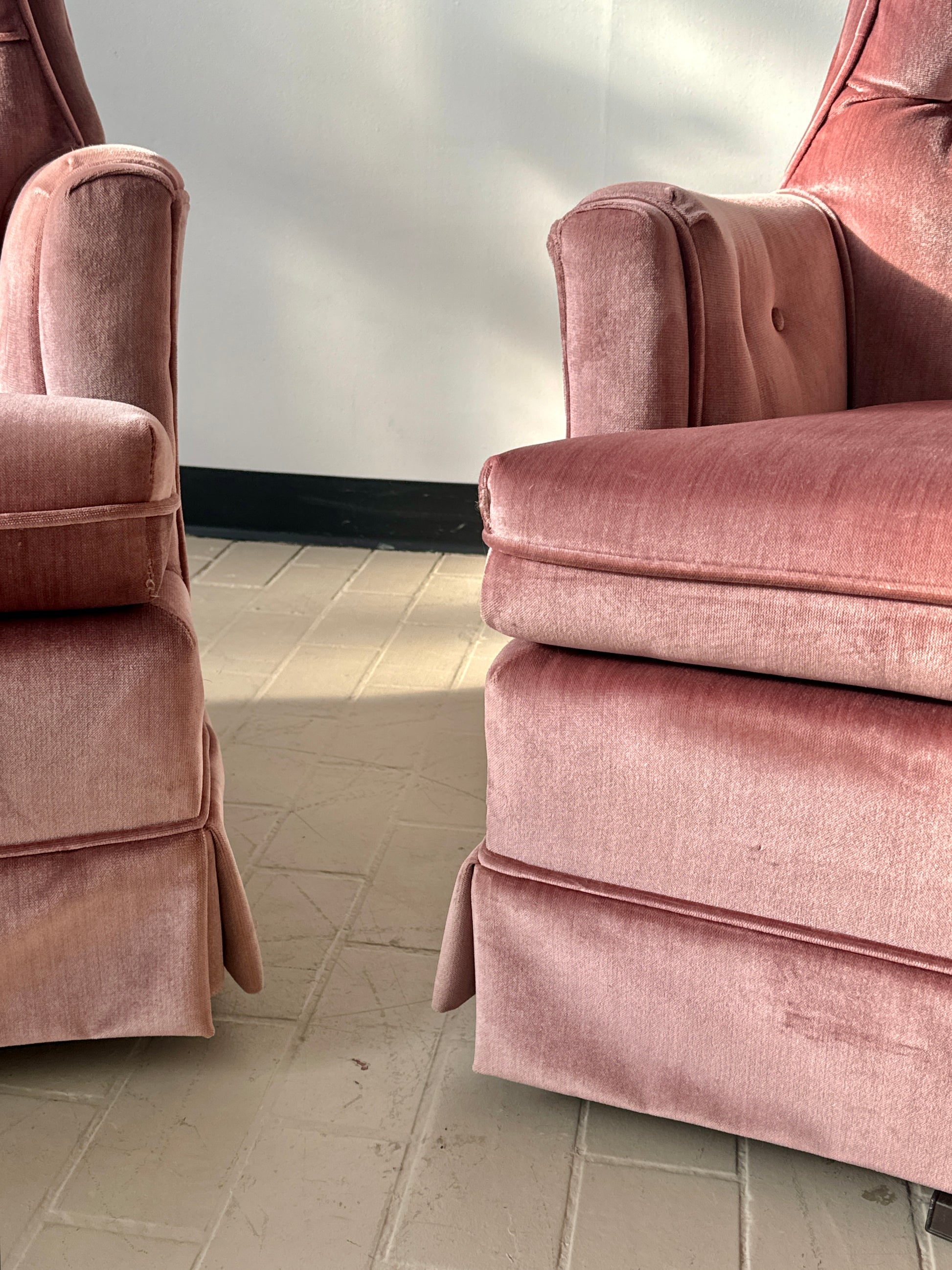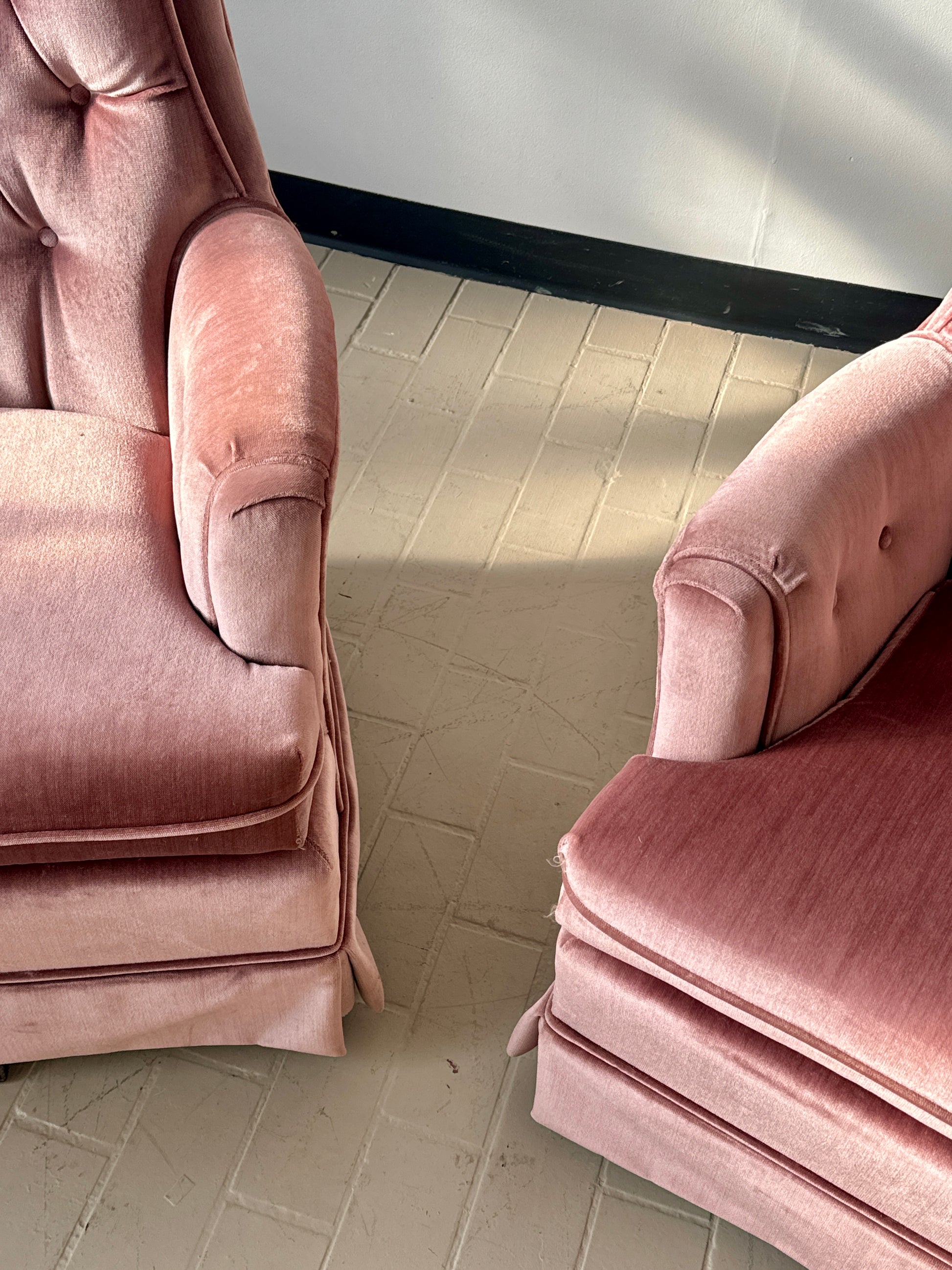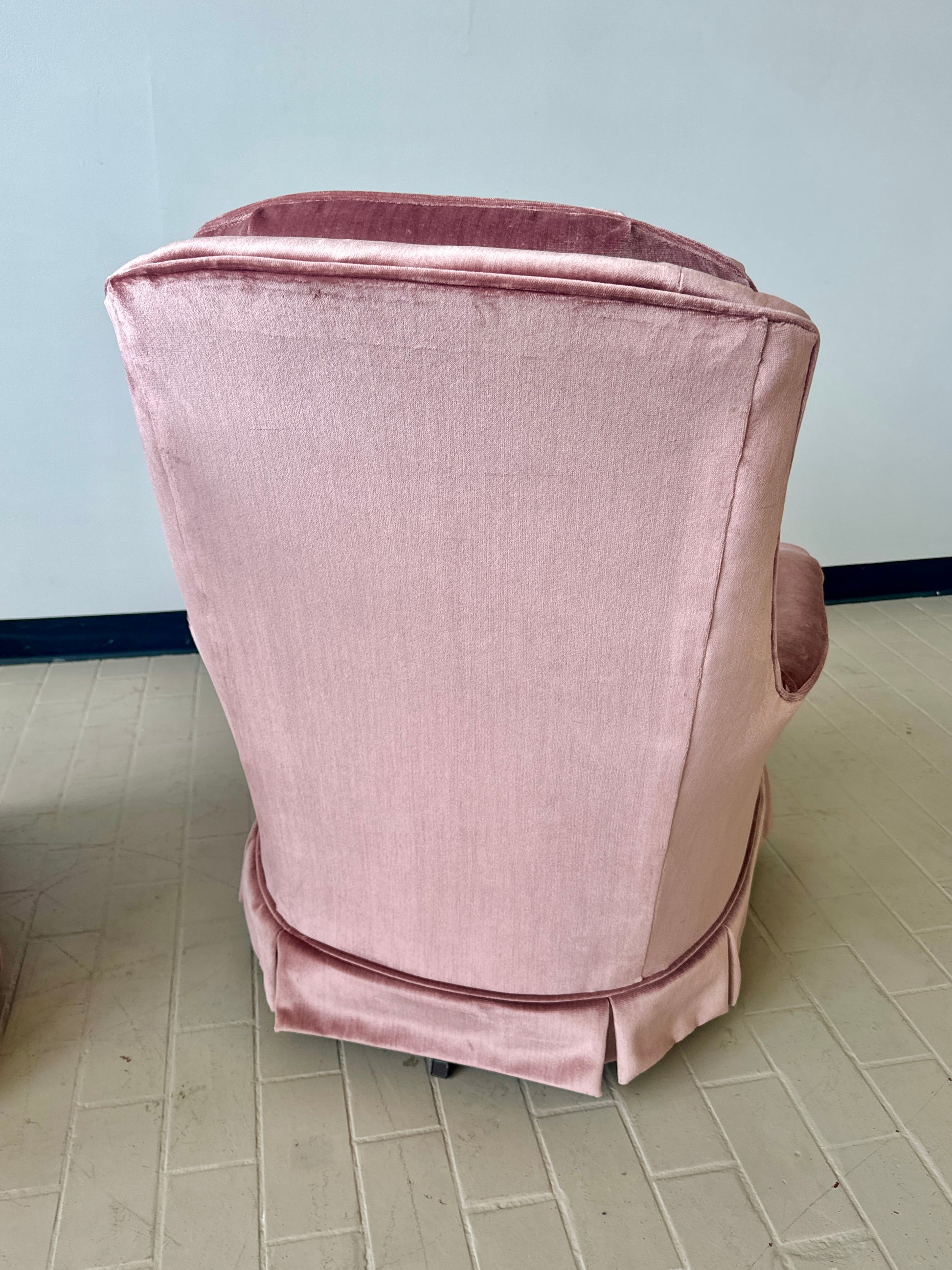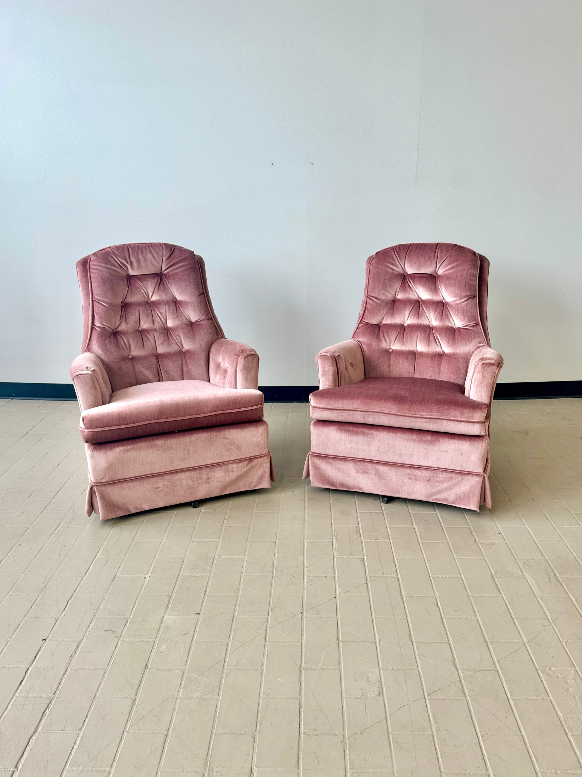 Vintage Pink Tufted Velvet Swivel Lounge Chairs (2 available)