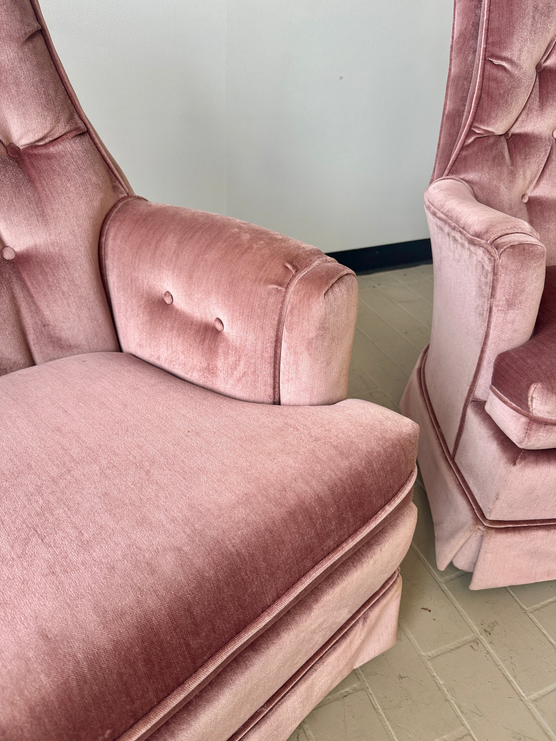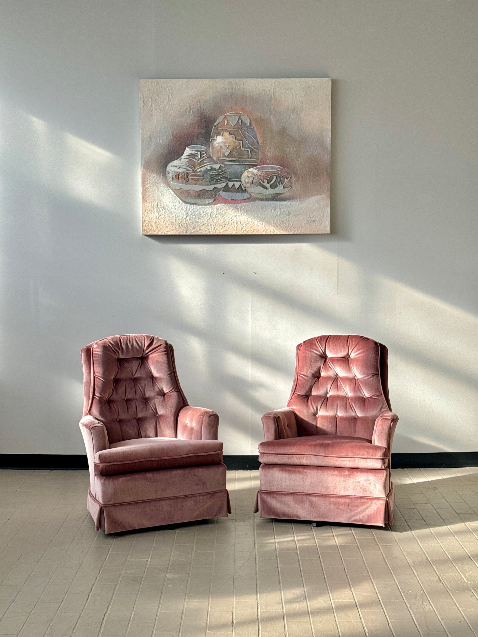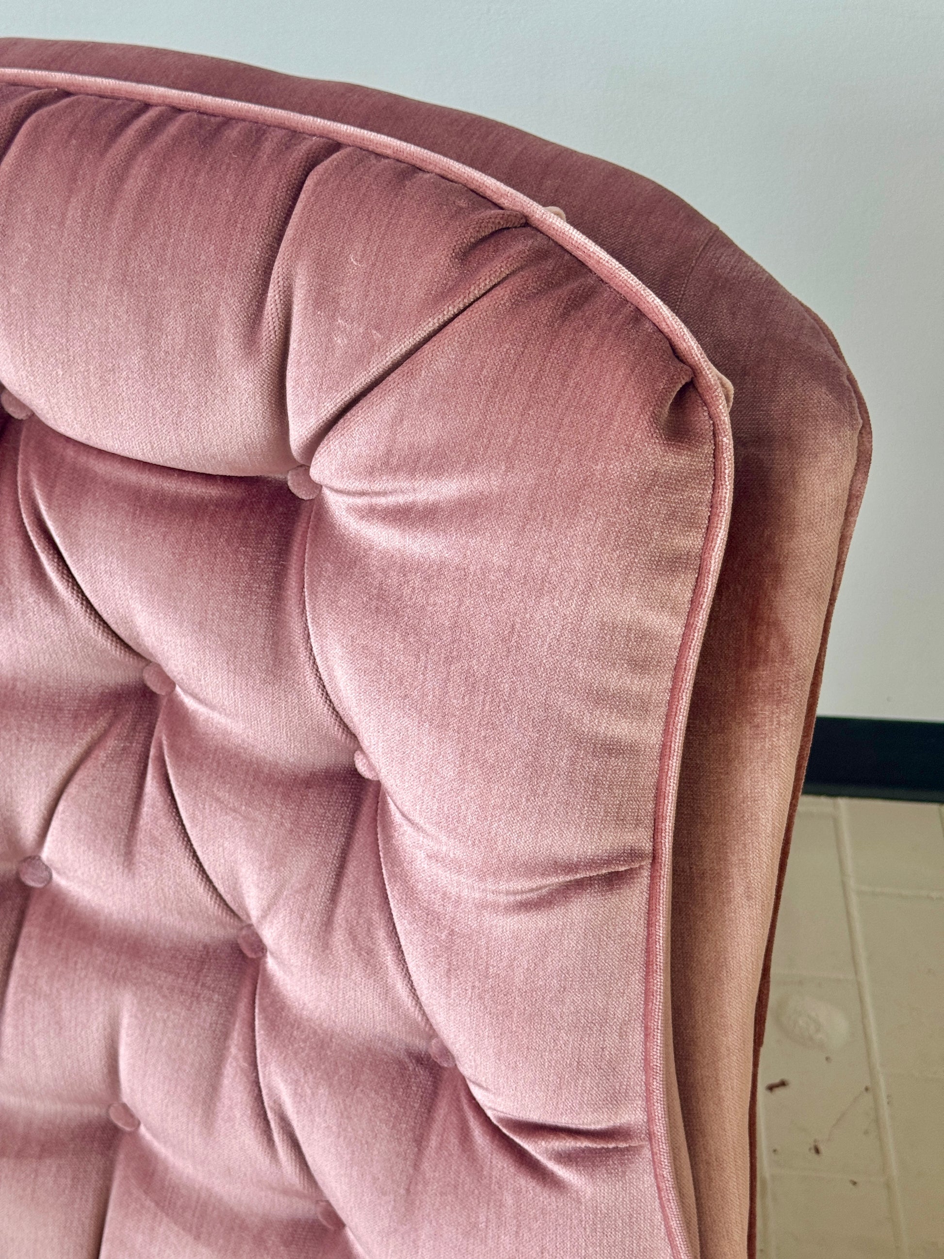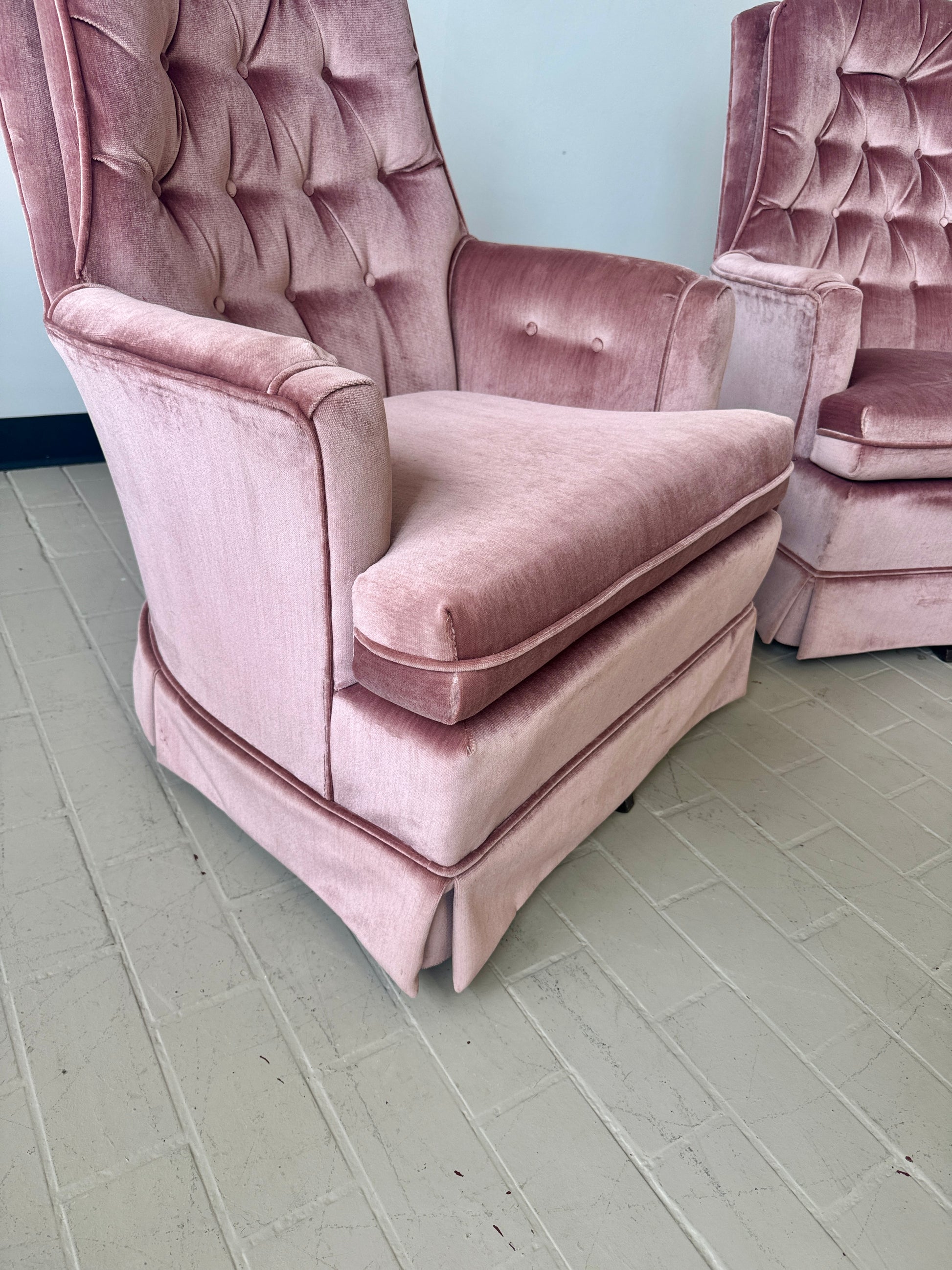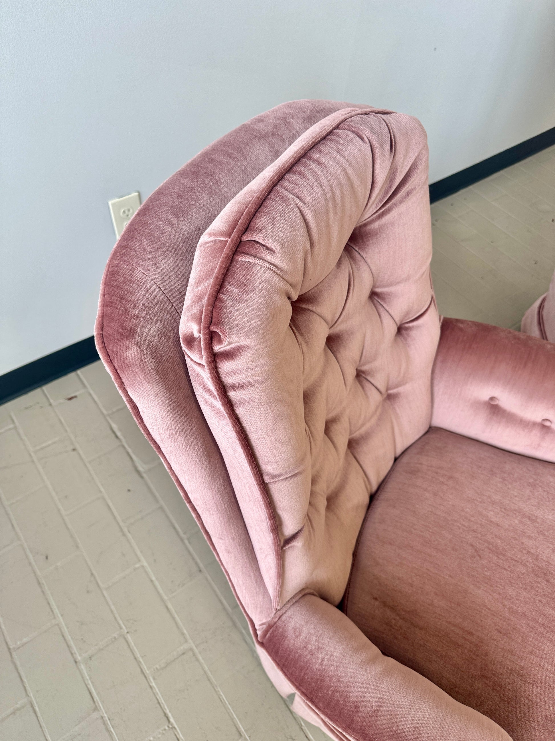 Vintage Pink Tufted Velvet Swivel Lounge Chairs (2 available)
