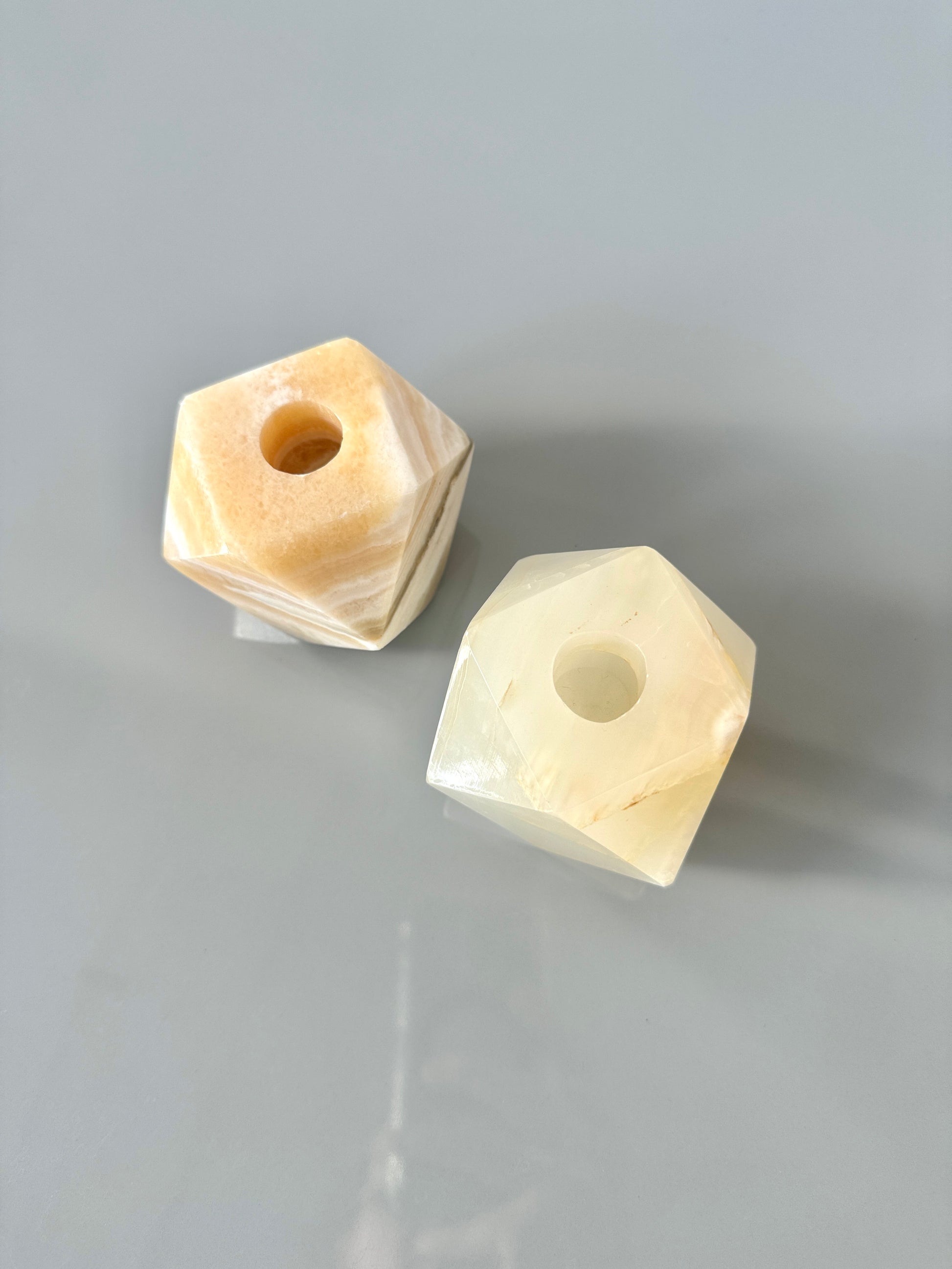 Vintage Polyhedron Onyx Candle Holders