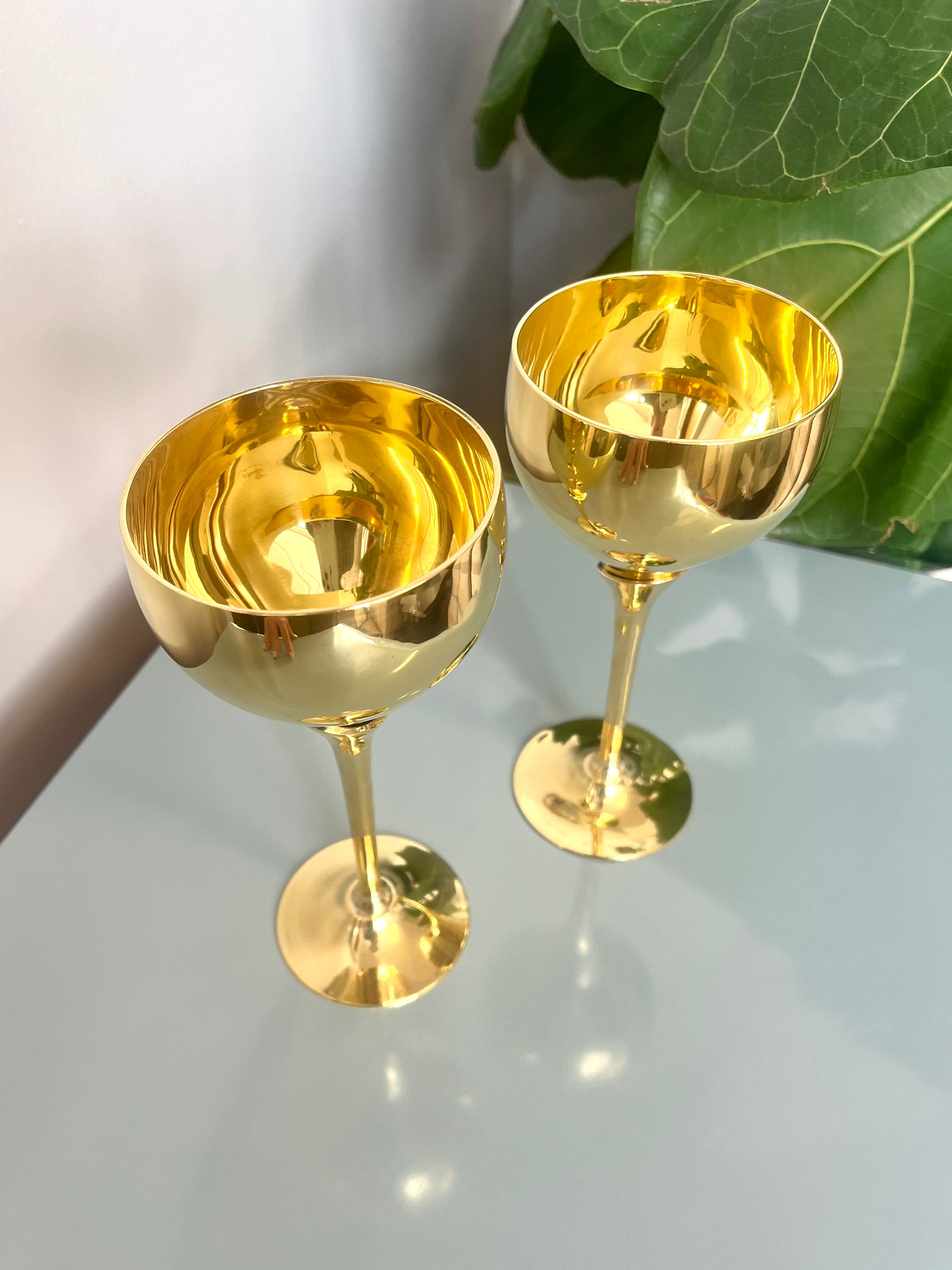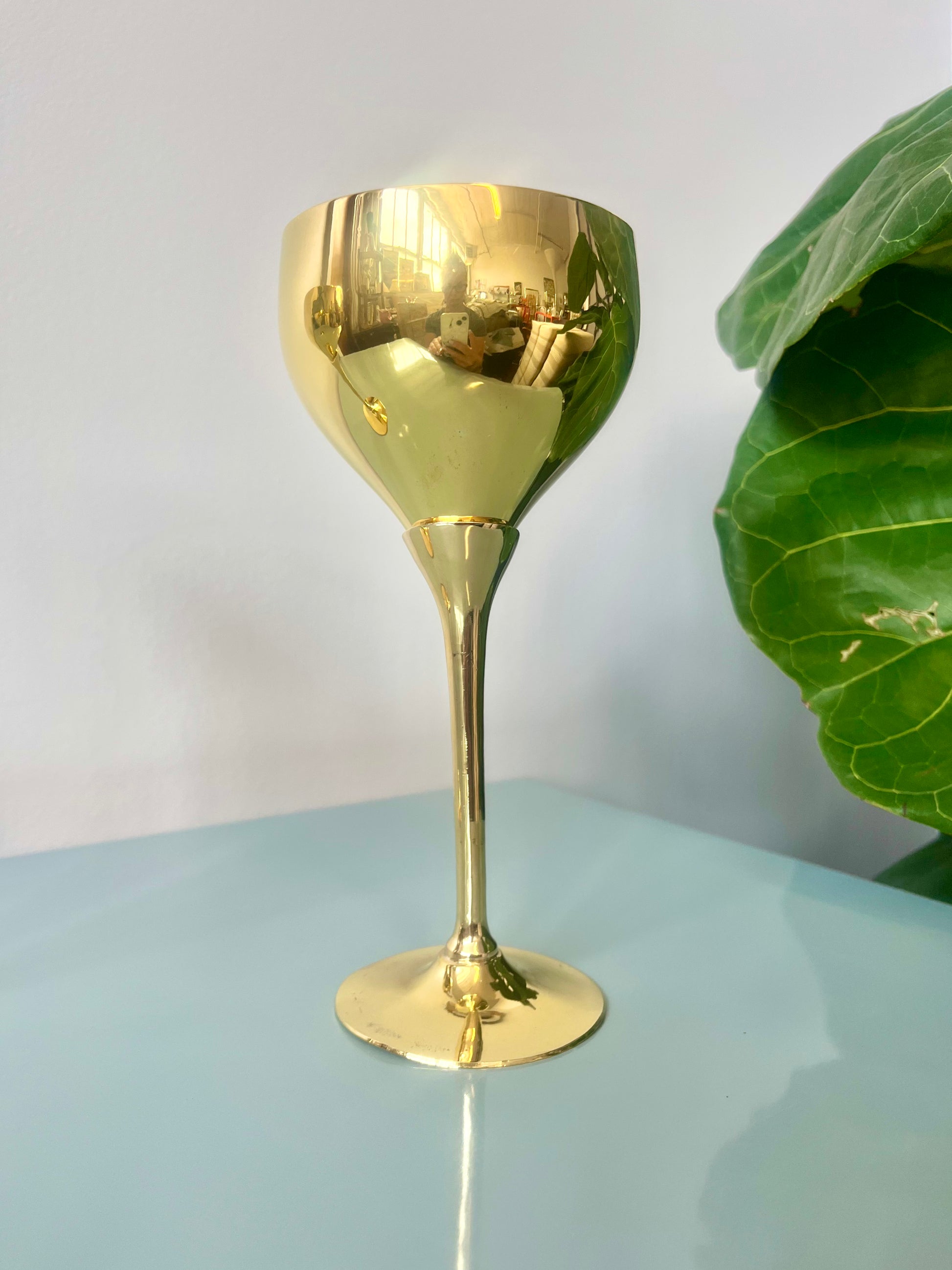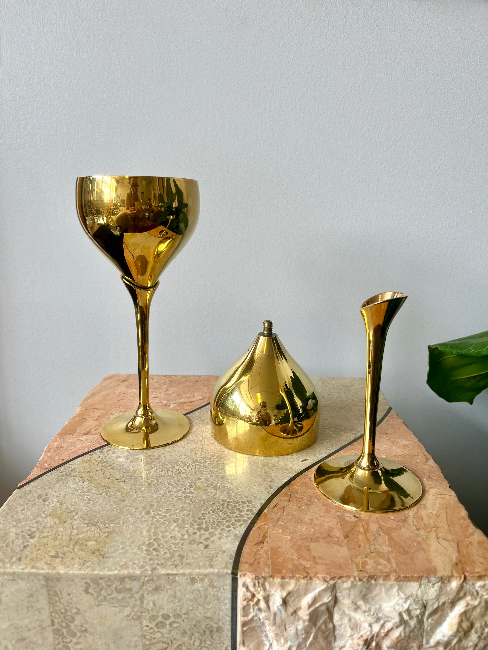 Vintage Solid Brass Tulip Stem Wine Goblets