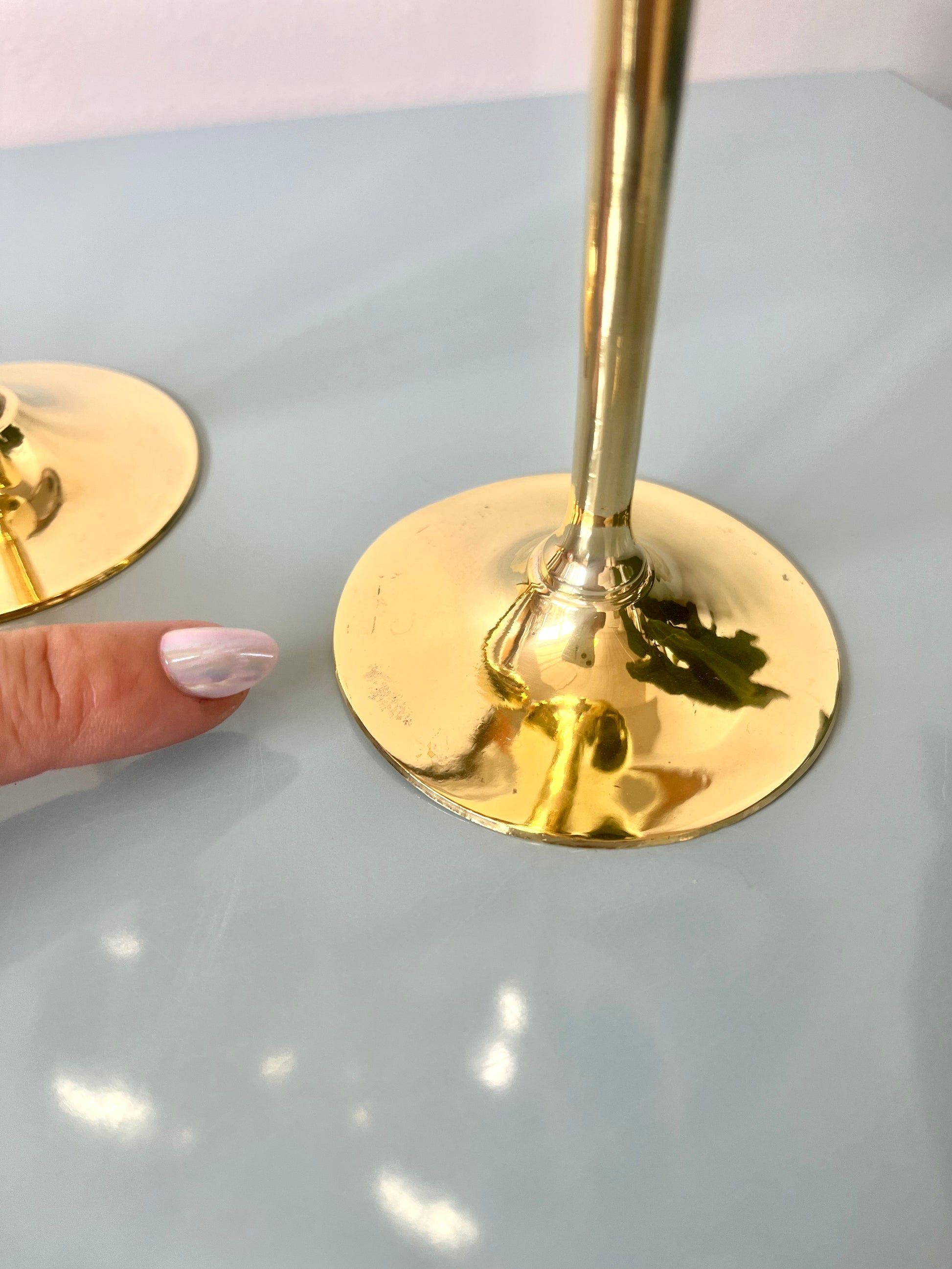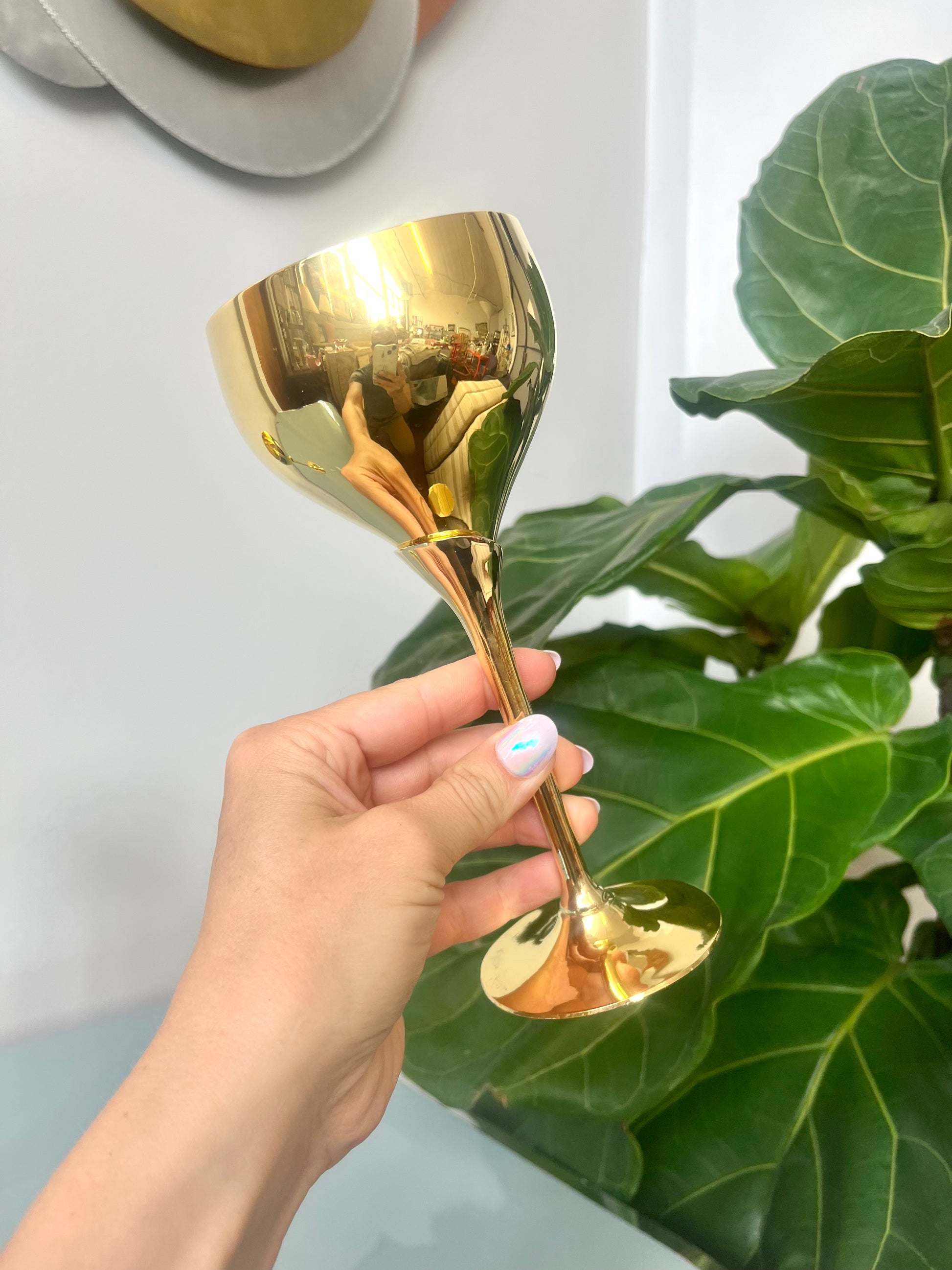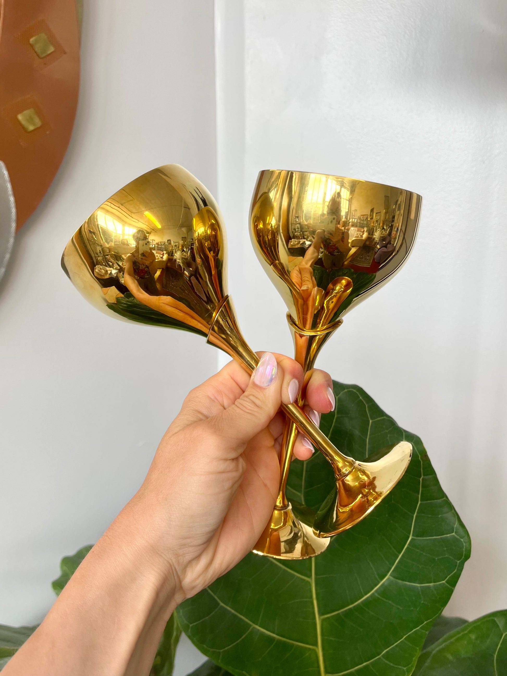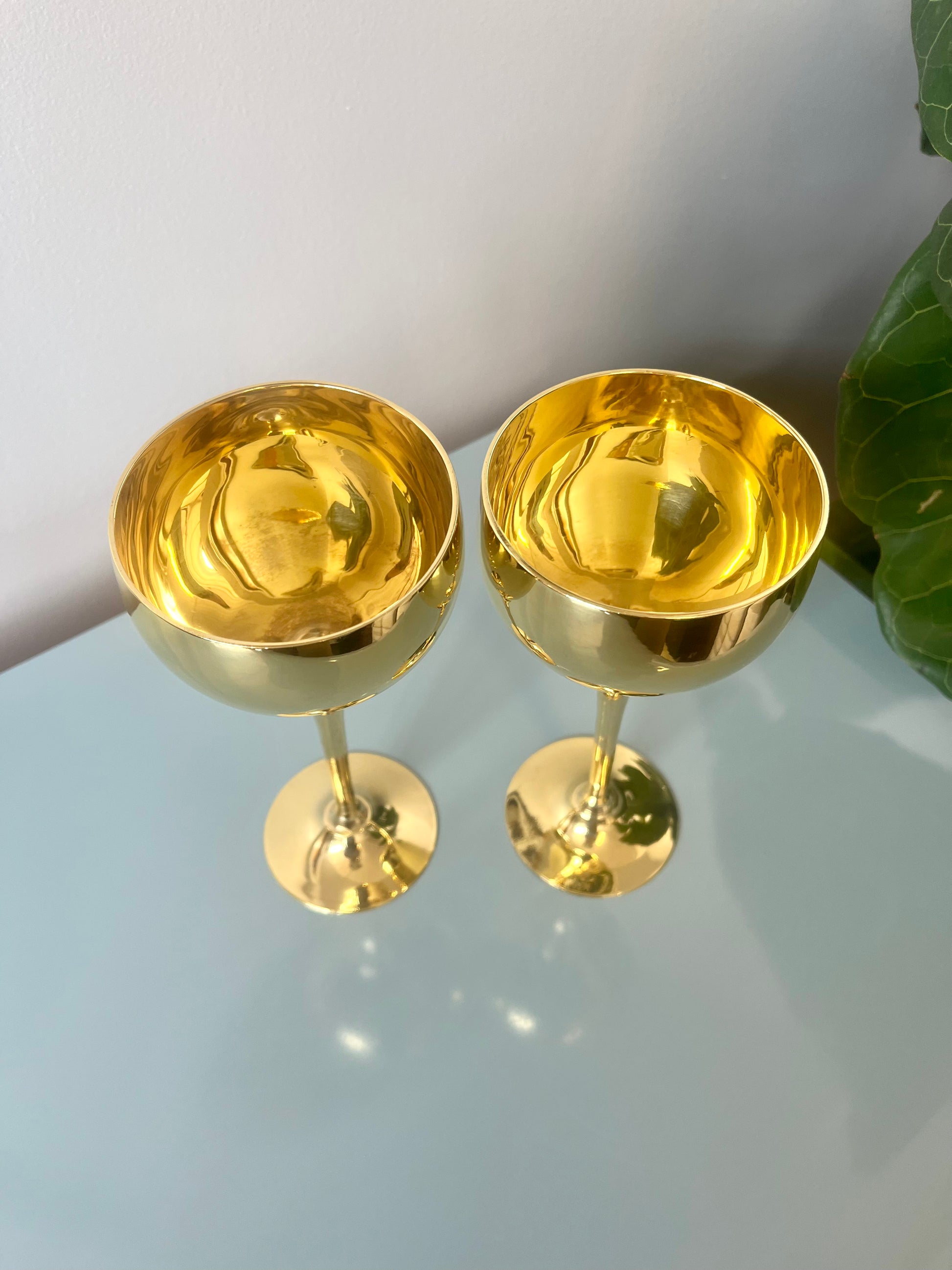 Vintage Solid Brass Tulip Stem Wine Goblets
